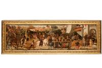 Anciennement attribués au Maître d’Anghiari ou Maître de l’Ecole de Pessalino. Dans la Bataille de Zama, présence des armoiries des Rucellai et des Médicis (1466 mariage de Bernardo Rucellai et de Marina de Médicis)