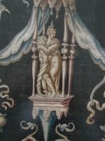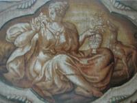 Exemple de tapisseries sur fond de grotesques produites à Paris ou à Fontainebleau, dont il existe des exemples comparables au Mobilier National (Cybèle, Flore et surtout La Mort de Joab, sans doute tissée sur un carton du même peintre).
