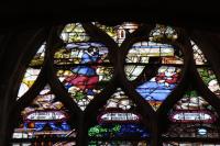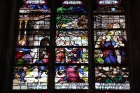 Elément d'une verrière (lancette centrale de la baie 110 provenant de la baie 108) . Verrière appartenant à un même cycle iconographique.