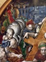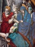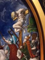 Vraisemblable inversion entre le médaillon du Jardin des Oliviers et celui de la Mise au tombeau lors d'un remontage des deux ensembles de plaques.