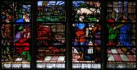 Cette verrière a été complétée par Edouard Didron entre 1868 et 1870. Celui-ci a exécuté dans les lancettes une composition moderne autour de fragments anciens provenant de l'histoire de Joseph (un buste de Putiphar au registre inférieur et trois panneaux de Joseph interprétant le songe des vaches maigres au registre supérieur). D'après les éléments originaux, Didron a reconstitué au registre inférieur, Joseph accusé par la femme de Putiphar et, au registre supérieur, Joseph expliquant les songes de Pharaon. Le tympan comporte un nombre important de fragments anciens appartenant à l'Histoire de Joseph, à la Vie du Christ ou aux Actes des apôtres (Pillet 2010, p. 285).