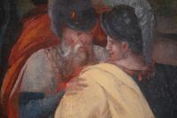 Sujet tiré du Livre des Rois (10, 1-3) ; deux petits médaillons centraux, ovale en haut et rectangulaire en bas de la composition principale, représentent en camaïeu des scènes aujourd'hui illisibles.
