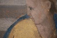 Peinture à l'huile sur enduit sec ; les empâtements et la palette très franche et heurtée sont bien perceptibles sur les détails.